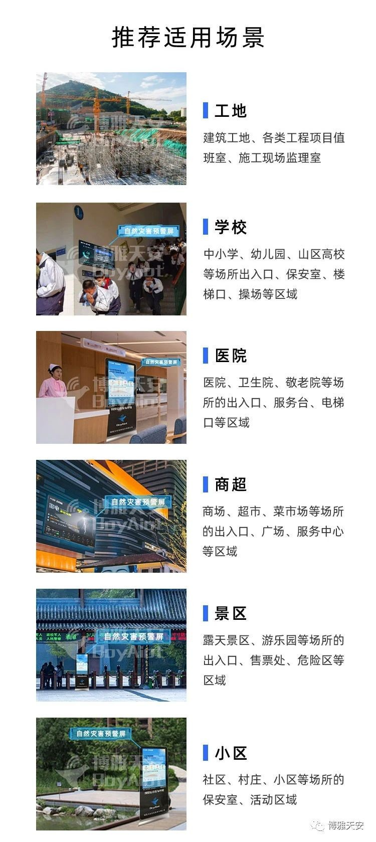 Natural disaster early warning terminal, real-time monitoring of typhoons, rainstorms, earthquakes and other natural disasters, improve the community's ability to prevent and reduce disaster, ensure that residents timely access to information, effectively avoid risks.
