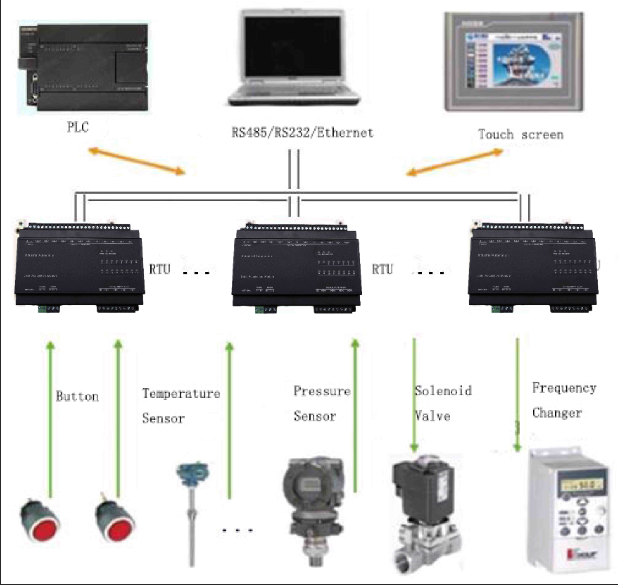 BOY-RTU-307D supports PLC; Support Kingview, Force control, MCGS and other configuration software; Support RS232, RS485 interface, Modbus protocol touch screen, text screen; Supports all standard Modbus device online communication.