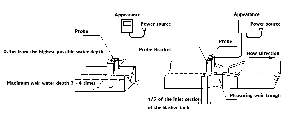 The physical quantity directly measured by the device is the liquid level. When it is used to measure the flow of an open channel, a measuring weir trough is installed on the open channel. The measuring weir trough converts the flow rate in the open channel into the level of the liquid level. The meter measures the water level in the weir tank, and then calculates the flow according to the relation between the water level and flow of the corresponding weir tank.