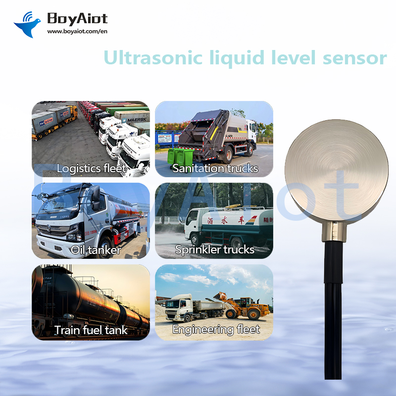 The BOY-WR06-S3 ultrasonic liquid level sensor utilizes the principle of ultrasonic echo distance measurement. The sensor is installed outside the bottom of the fuel tank and emits ultrasonic signals from the bottom. When it encounters the reflection of the oil surface, it calculates the liquid level height based on time and speed. Combined with unique digital signal processing technology, it overcomes the influence of the container wall and achieves high-precision non-contact measurement.