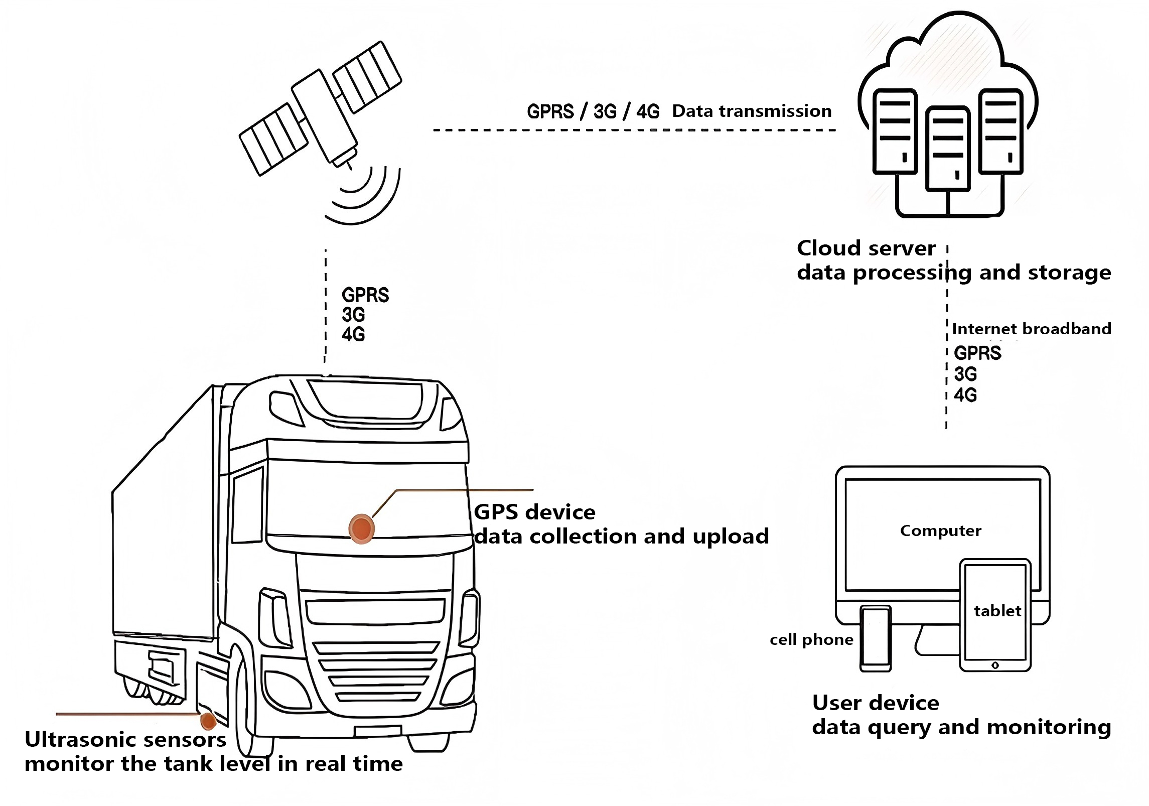The fuel tank does not require drilling and does not damage the structure of the fuel tank | IP67 protection grade, Working temperature range -30 ℃~+80 ℃ | Supports RS232, RS485, OV~5V |