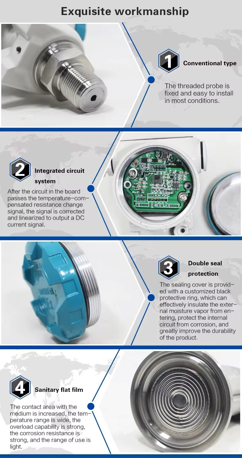 BOY-YP04-S uses the OEM pressure sensor with stainless steel isolation diaphragm as the signal measurement element, and through the computer automatic test and compensation calculation, the amplifier circuit is located in the housing, the sensor signal is converted to the standard output signal, with excellent performance.