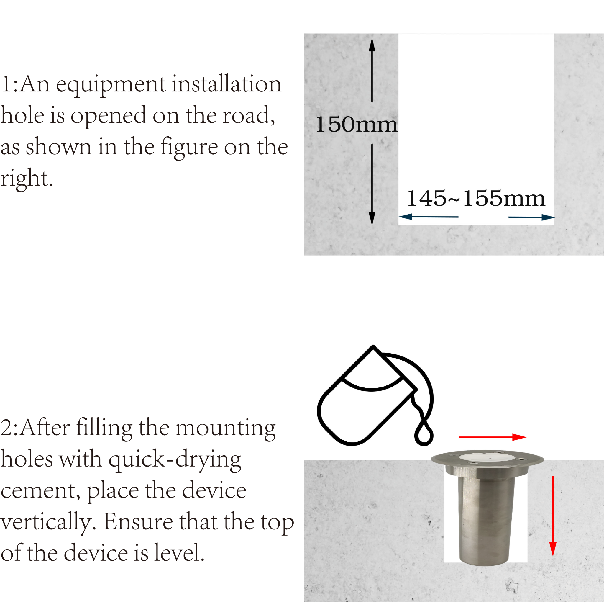 The installation is simple. Drill a 150mm hole into the ground with the hole punch used to install the air conditioner, bury the detection end, and fill it with cement. The monitoring host is fixed on the light pole within 100 meters of the attachment through the hoop, and install one point for about half an hour.