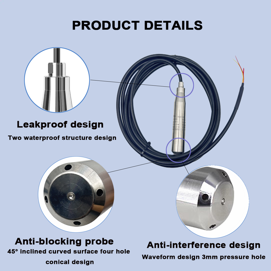 A: When the sensor is put into a certain depth of the measured liquid, the pressure of the measured medium is introduced into the positive pressure chamber of the sensor, and the atmospheric pressure on the liquid surface is connected to the negative pressure chamber of the sensor through the cable airway to offset the front of the sensor, so that the sensor can measure the pressure, and the liquid level depth can be obtained by measuring the pressure